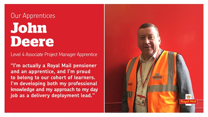 Last year, John Deere started drawing some of his occupational pension from Royal Mail, but he also started an apprenticeship.