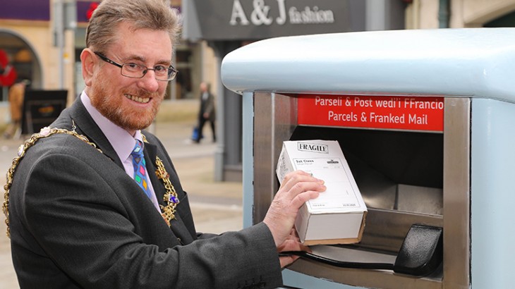 The Lord Mayor of Swansea, Peter Black (pictured), attended the opening of the special postbox and even posted a parcel to his mother.